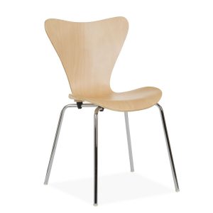 sedia progettata nel 1955 dal designer e architetto danese Arne Jacobsen sedia 3107 per Fritz Hansen – 50 cm x 52 cm, altezza 78 o 80,5 cm, scocca in legno naturale o laccato, gambe in acciaio