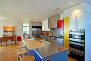La cucina è molto vivace e tecnologica come indicano i pianeti Uraniani e i colori richiesti dalla Luna Sagittario!